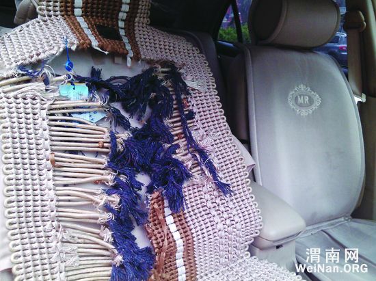 由“黑心棉”生产的手编汽车坐垫放在密闭而狭小的车内会对人体造成多重伤害。