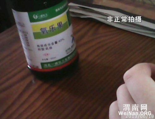 农业部从2011年起就要求“高毒农药经营单位核定规范化、购买农药实名化、流向记录信息化、定点管理动态化”,做到“高毒农药100%信息可查询、100%流向可跟踪、100%质量有保证”(标板)。陕西也于2012年在全省统一实行高毒农药“五项制度”的严格管理,要求对高毒农药产品的来源、购买者身份、购买数量、购买时间、购买用途、联系方式等进行详细登记,凡购买高毒农药的人员,必须凭本人身份证或户口本以及所在地村委会或合作经济组织出具的种植证明,根据需要限量购买。但在渭南的这家农药商店里,店主没有要求记者出具任何证明就把“氧乐果”和“甲拌磷”这两瓶高毒农药卖给了我们。店主告诉记者,这些不是剧毒的,不用登记。