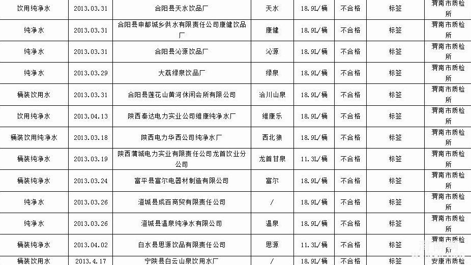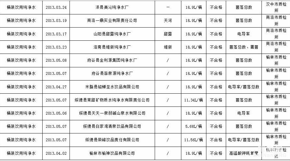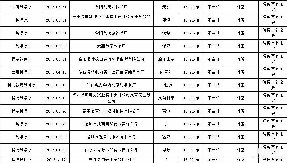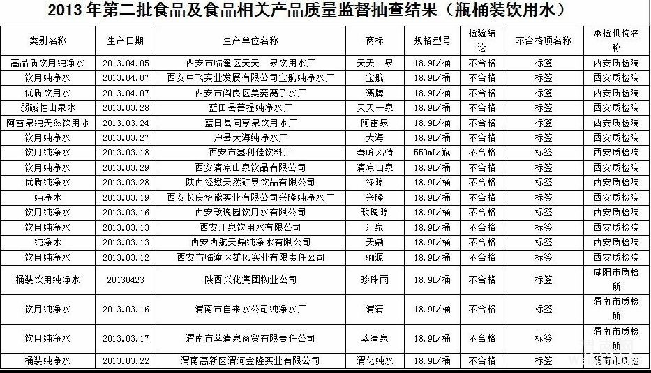 桶装饮用水68批次不合格