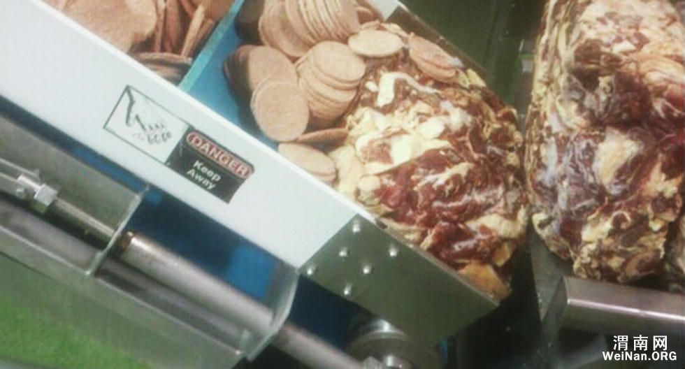 这家公司被曝通过过期食品回锅重做、更改保质期标印等手段加工过期劣质肉类,再将生产的麦乐鸡块、牛排、汉堡肉等售给肯德基、麦当劳、必胜客等大部分快餐连锁店。在记者提出质疑后,其工作人员甚至侃言:“过期也吃不死人”。图为混合回料的牛肉饼。