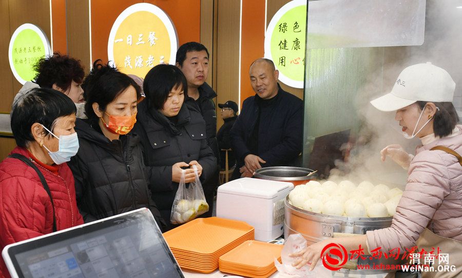 三贤路渭南茂源老三包子店内,顾客购买包子。记者 杨大君 摄