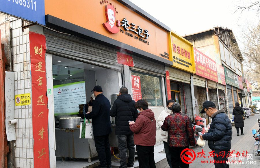 胜利大街渭南茂源老三包子店门口,顾客排队购买包子。记者 杨大君 摄