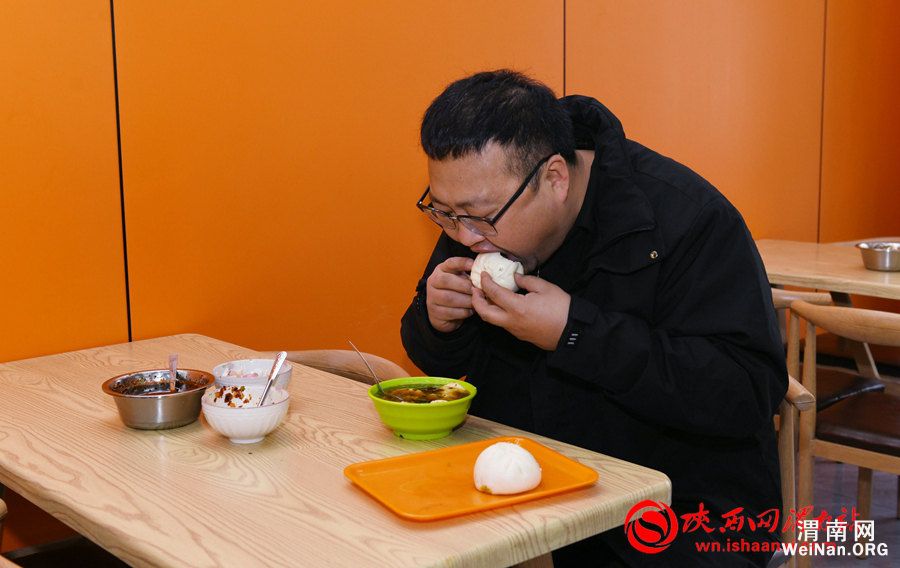 胜利大街渭南茂源老三包子店内,顾客正在用餐。记者 杨大君 摄