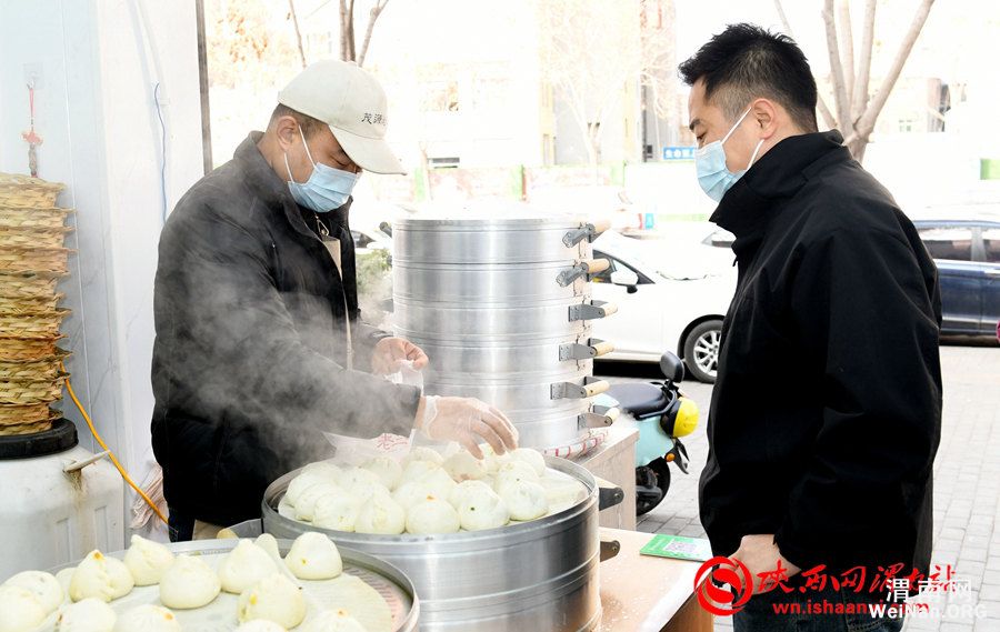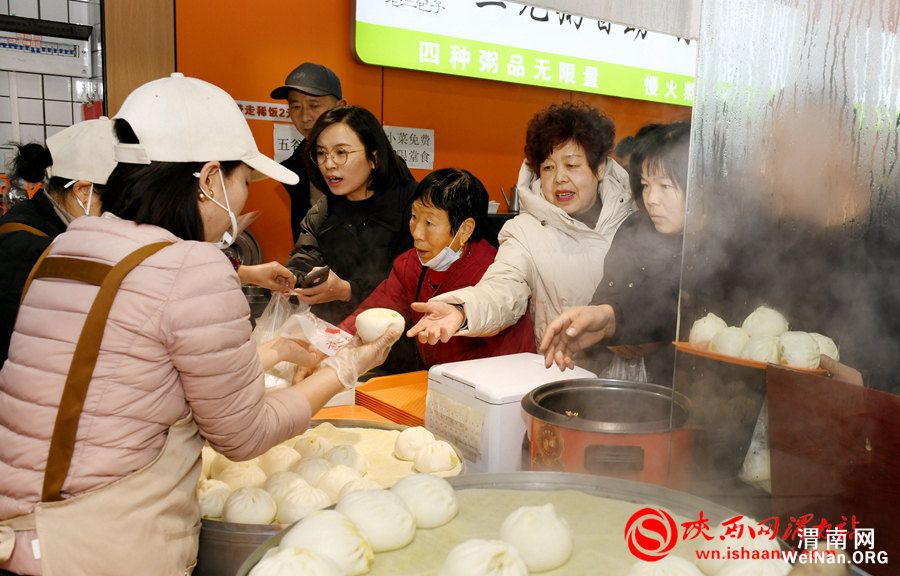 胜利大街渭南茂源老三包子店门口,顾客排了长队。记者 杨大君 摄