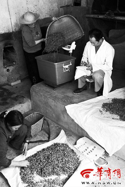 山阳县茶农们带着刚刚采摘的茶鲜叶到茶厂分拣加工 本报记者 孙强摄