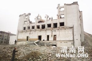 拆除以后的发展方向,冠群房地产开发公司的郭总也做了相应回答。拆除工作完毕后,他们将投资2.5亿元,再建渭南最高层酒店,楼体高度约建100米,楼层为30几层,标准为四星级,大楼落成后还叫凤凰宾馆。在宾馆周围还会建一些商业、娱乐、餐饮、休闲场所,形成一个小型的商业主体。郭总说,规划资料他们已经报到了市规划局,现正处于审批阶段,审批后会把具体的规划图展示给大家。郭总也表示希望通过这个项目能够改变解放路商业落后的现状,并带动东部城区的经济发展,他们将身担社会责任感和历史责任感,尽最大努力完成这个项目,让市民满意,让政府满意。我们也希望这支落架的凤凰能够浴火重生再现昔日辉煌。